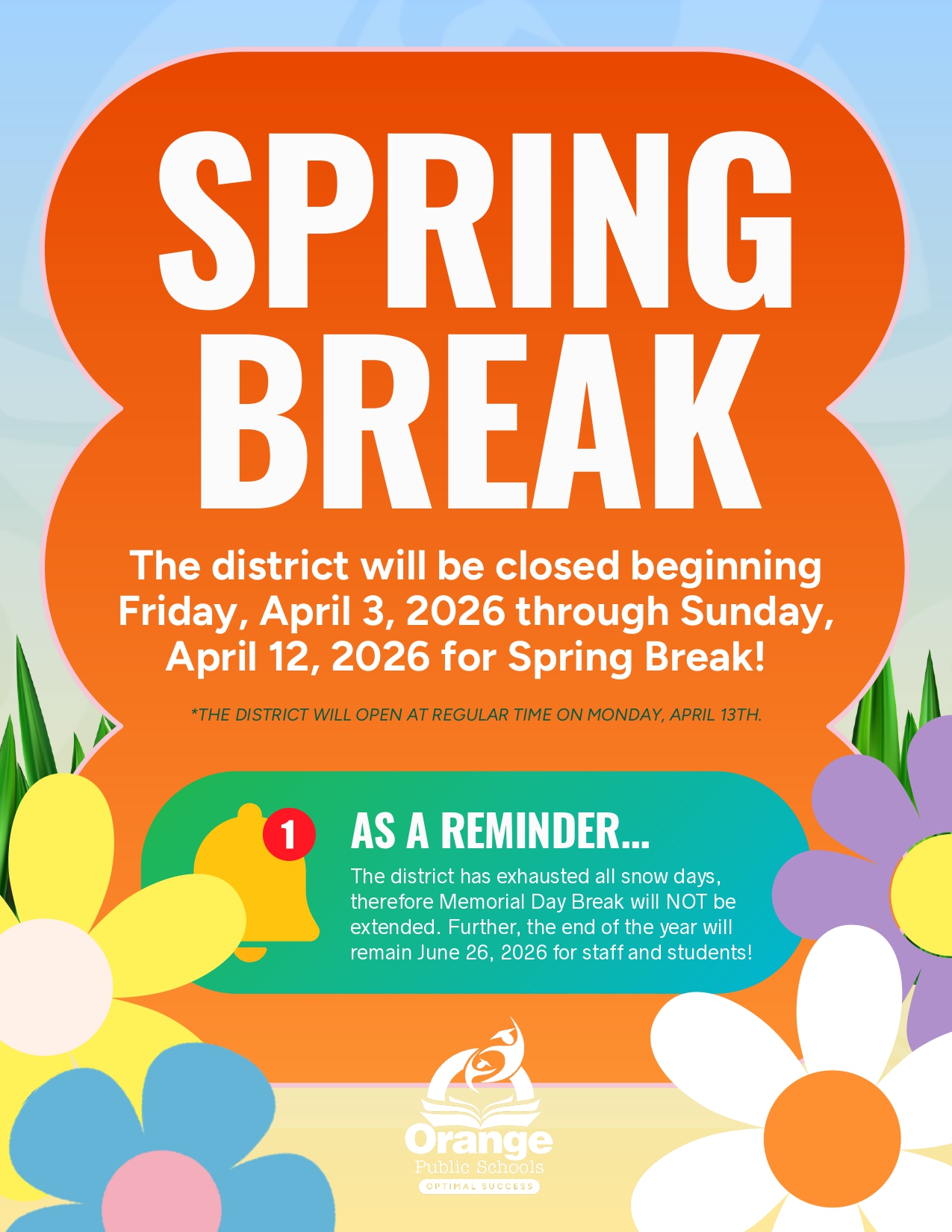 Spring Break Is Coming: The district will be closed beginning Friday, April 3, 2026 through Sunday, April 12, 2026!