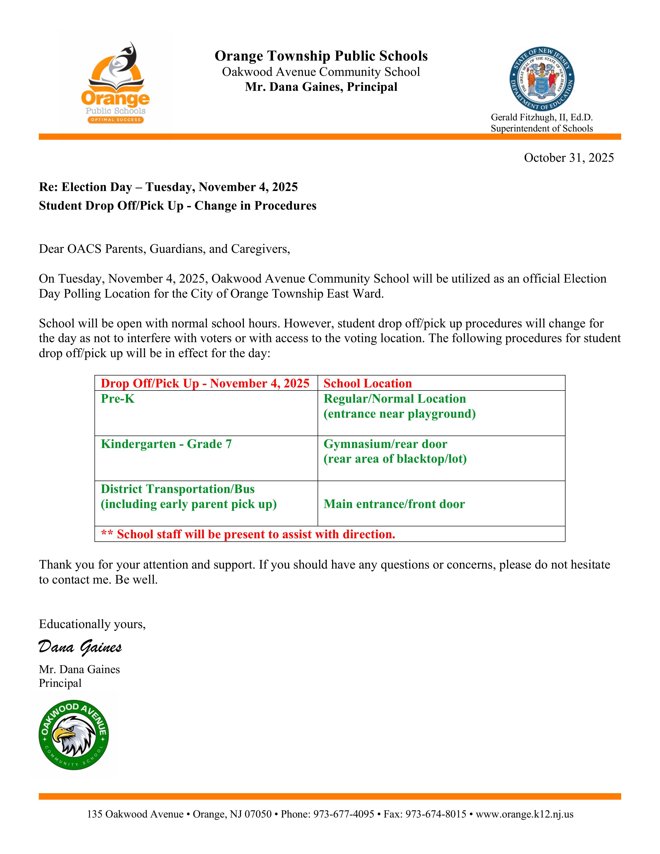 Dear Oakwood Avenue Community School Families, At Oakwood Avenue