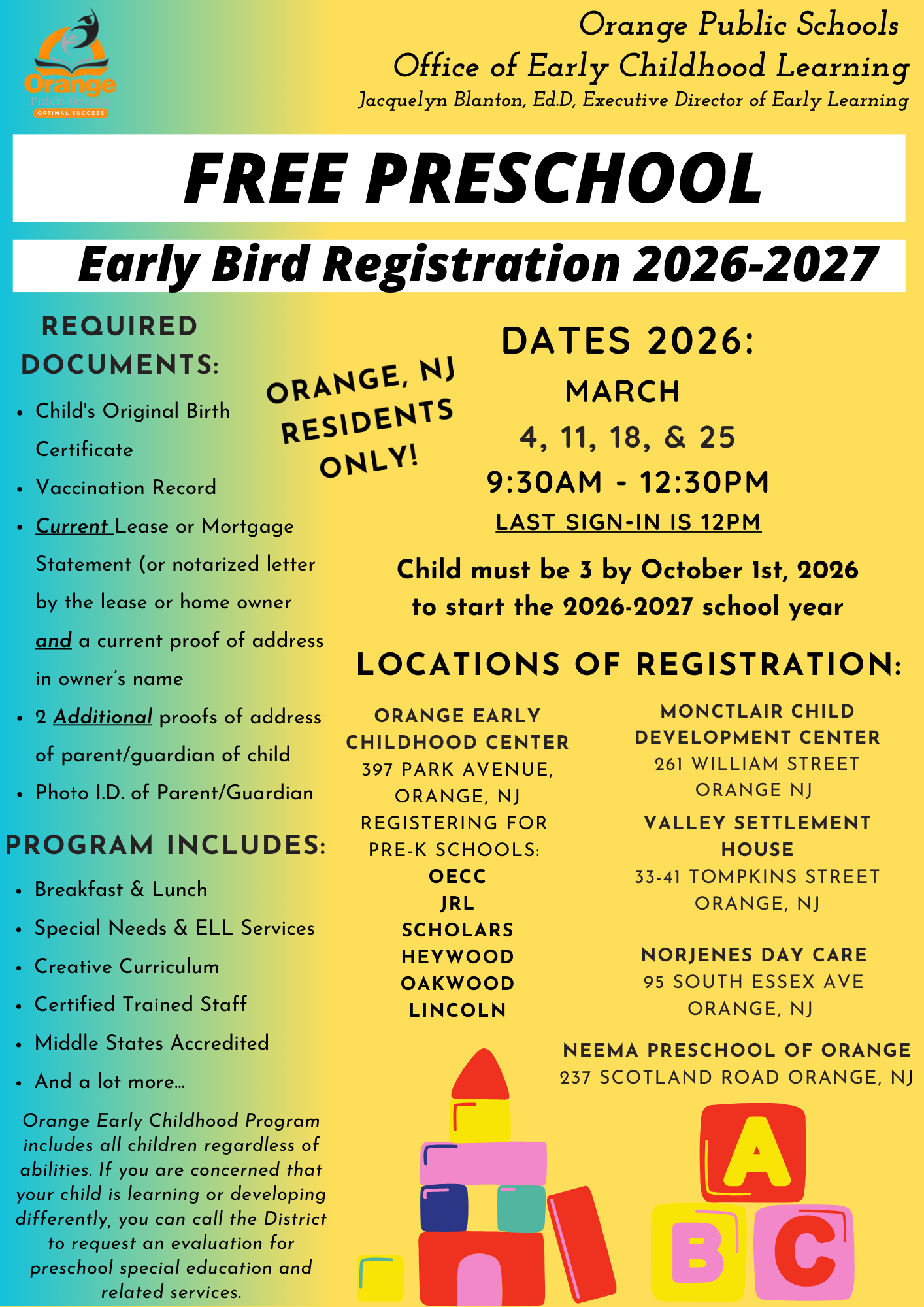 Please note that all Orange Public Schools and district offices will be CLOSED on Monday, January 19, 2026 in observance of Dr. Martin Luther King Jr. Day.Classes will resume Tuesday, January 20th ...